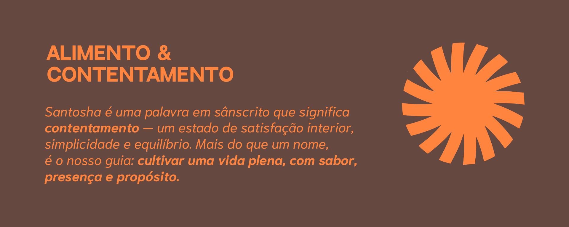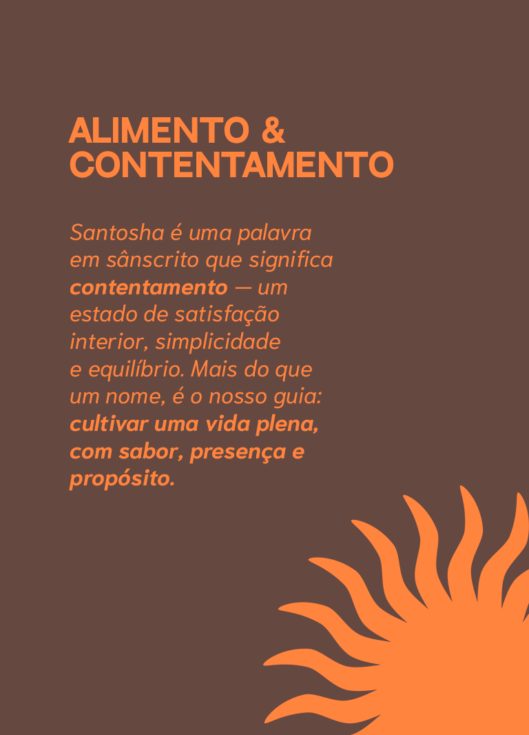 A Santosha - Alimento e Contentamento é um ecossistema de marcas que celebra a culinária e a cultura indiana no Brasil, unindo tradição e autenticidade com o sabor e a criatividade do Nordeste Brasileiro. Oferecemos experiências únicas e fabricamos os nossos produtos em microlotes, com presença e propósito, oferecendo chás, especiarias e temperos que celebram equilíbrio, cultura e contentamento.
